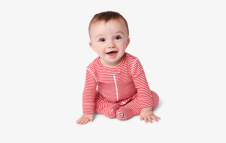 Featuring an updated fit, with a two-way zipper, zipper garage, and foldover mitts for sizes up to 9 months. All made in our new organic cotton interlock.
